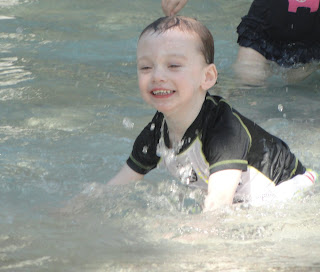 We recently started Dean is a SoccerTots program. He loves it! It helps with his coordination, but he really is benefiting from the socialization and learning to follow instructions. I love this pic. They were supposed so jump over the noodles in this exercise. My little man just decided to use the noodle as a sword. A second before this pic was taken he hit Jeremy with the noodle and said "Aye-ya!"